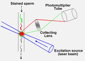 The SCSA® test is performed using a laser-based device called a flow-cytometer which measures 250 sperm/second. The test result is based on the measurment of around 10,000 sperm.